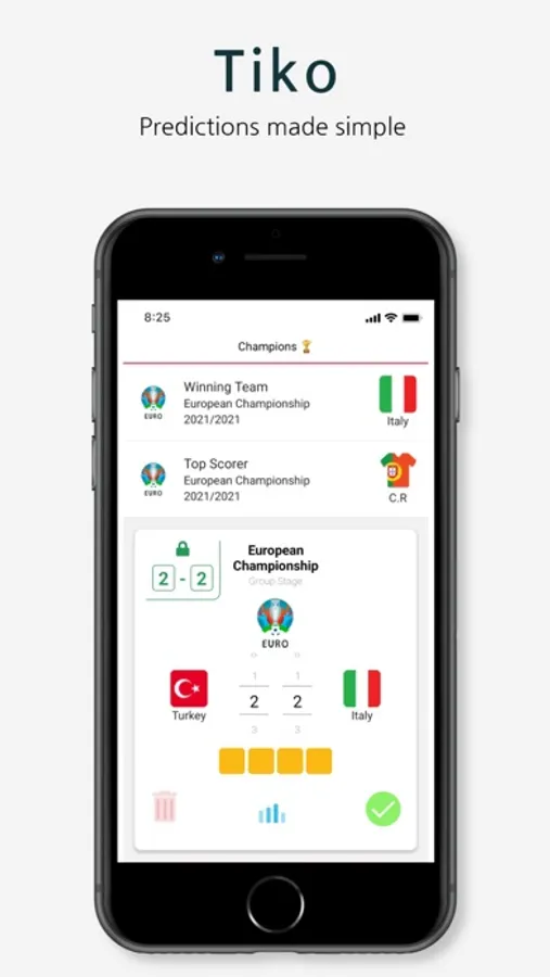 Tiko lets you create a group, subscribe to your favorite tournaments or leagues, invite your friends, and compete in match results, top scorer, and winning team predictions.