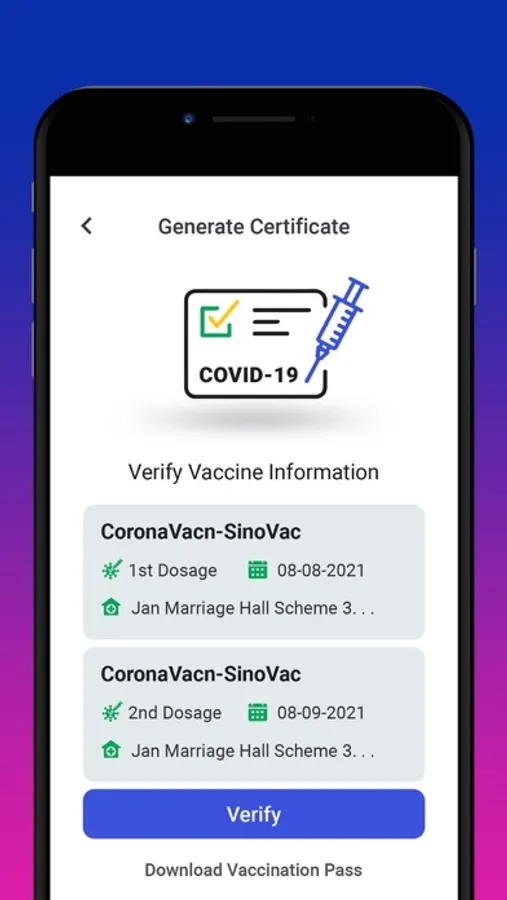 Government of Pakistan has launched the Vaccination Pass App to facilitate the people to carry their digital Covid vaccination certificate. This App allows the users to download the vaccination certificate issued through https://nims.nadra.gov.pk/nims/certificate and save it on the phone. The digital certificate is official proof of COVID-19 and other vaccinations should it be needed domestically or internationally. Using the QR Code, the digital certificate can be verified instantaneously.