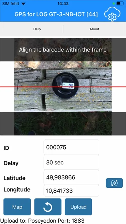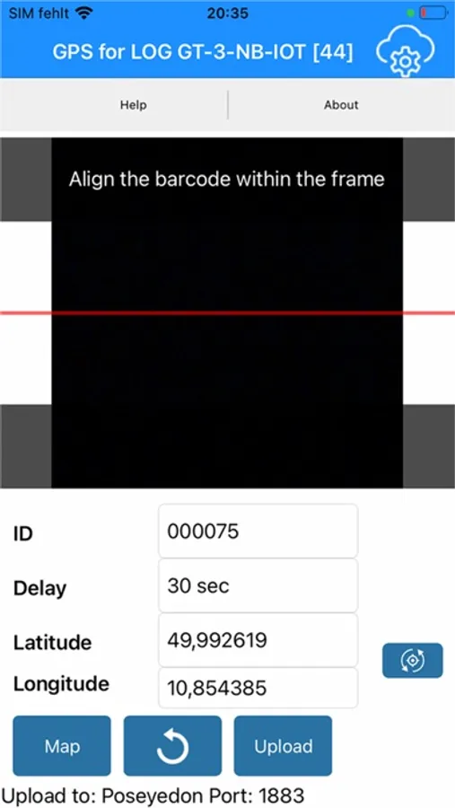 It is a special app for SebaKMT's NB-IoT transmitter. This App is used to store GPS positions for a LOG GT-3-NB-IOT device. The device is identified by a scan of the QR-Code. After a successful scan the GPS position will be determined and can be uploaded to the server.