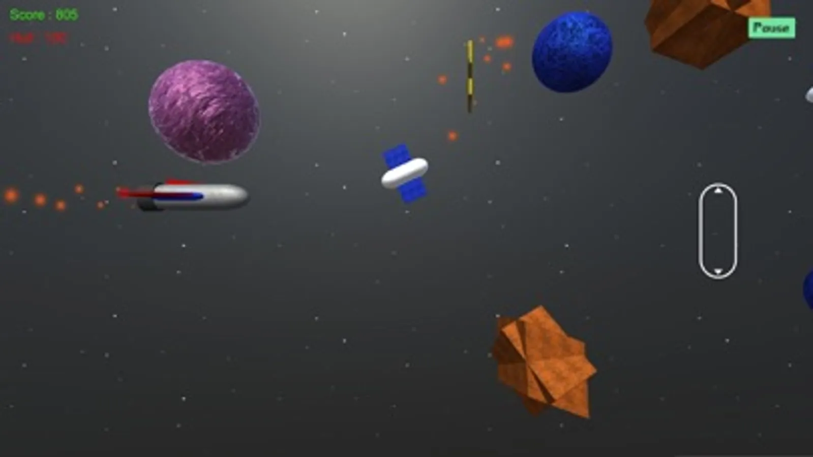 This is a simulation game for exploring the universe and planets. You control a spaceship to fly in space. It should be noted that when you encounter a planet, you will lose a part of your life. The farther you fly, the higher your score.