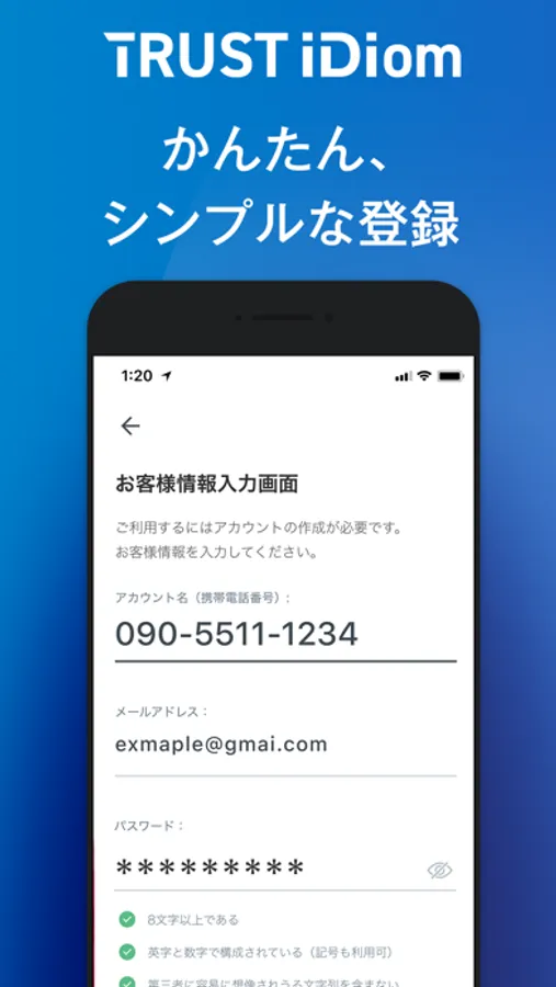 Trust IdiomⓇは、SBIデジトラストが提供する、本人確認済みID発行サービスです。生体認証と金融機関の審査・承認を経たIDによって、金融機関外のサービスとお客様の口座を連携することができます。これによって、昨今、問題となっている銀行口座の不正利用を防止することが可能になります。