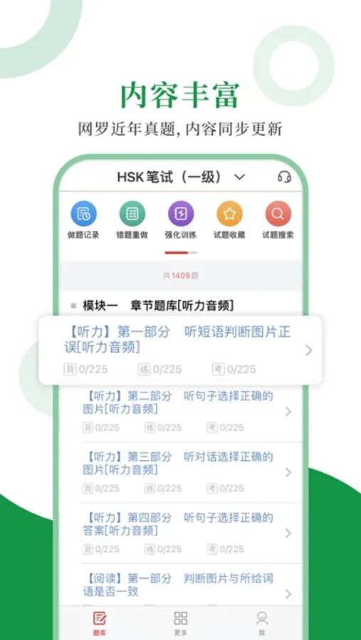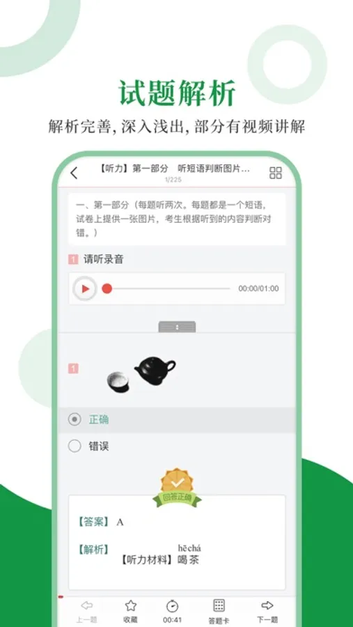 专为新汉语水平考试HSK精心准备的考试配套题库,每一道试题都有答案解析,为考试提供了充分的复习准备,可随时随地学习练习,支持手机、平板多端同时使用。