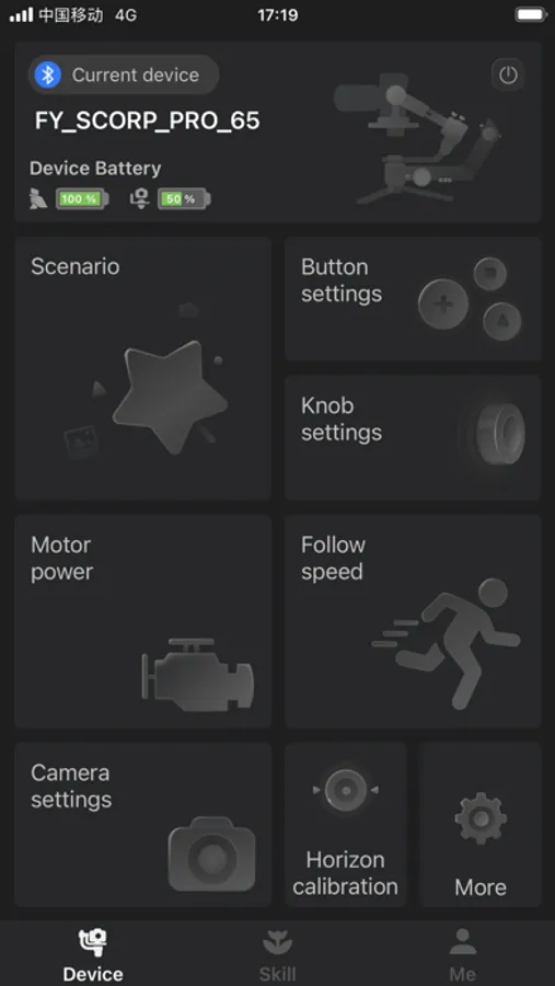 Feiyu SCORP App is developed for Feiyu SCORP Gimbal product, via this app, you can perform remote control, gimbal firmware upgrade, learning skills and so on