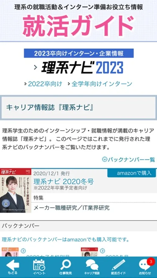 理系学生のためのインターンシップ・就職情報サイト『理系ナビ2023』がアプリになりました!2023卒対象のインターンシップ・就職・イベント情報など、キャリアを考える理系学生のための情報をお届けします。理系向けのインターンシップや就活に役立つ情報やサービスを提供しているので、ぜひ活用してください!(2023年卒業予定の学部3年、修士1年、博士などが対象/2021年6月時点)