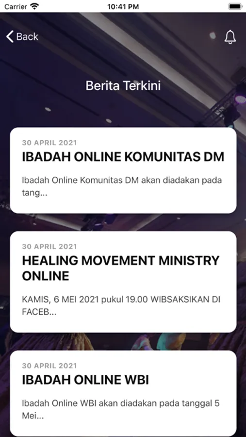 GBI JIS Senayan is an application for inform user about services, latest news and worship schedule. Users can see the detail of worship such as time and location of worship. This application also provide registration link for onsite worship.