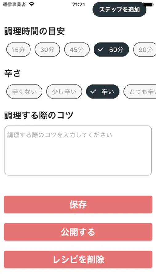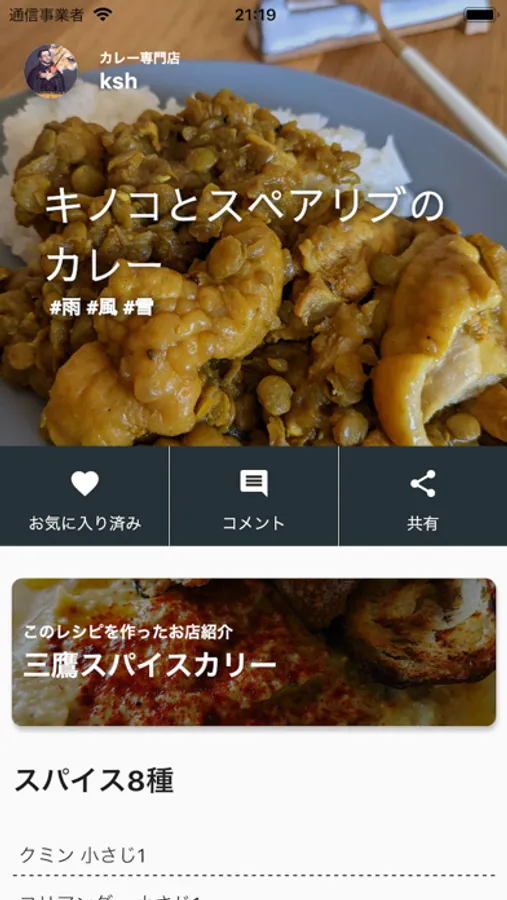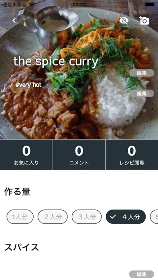 スパイスを使った料理向けにレシピ表示、登録の機能、表示が調整されているので、スパイス料理が好きな方は是非!