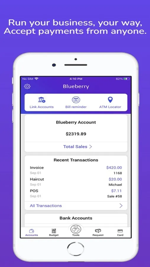 With Blueberry you can manage and accept payments, track sales and customers directly from your phone or credit card reader. Blueberry offers a bundle of payment solutions for self-employers, independent contractors, freelancers, and corporations.
