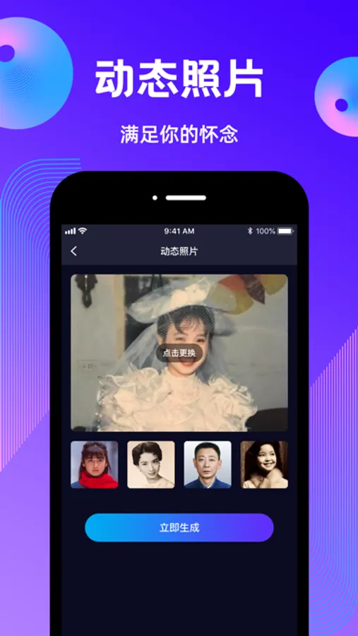 动态老照片:提供多张动态视频模版,只需一张图片,即可实现动态老照片效果。