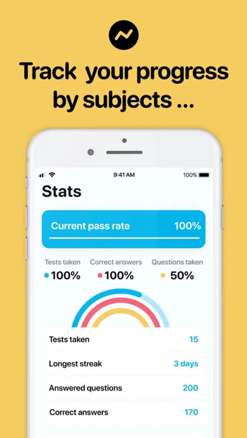 - Track your strengths and weaknesses within Stats section of the app