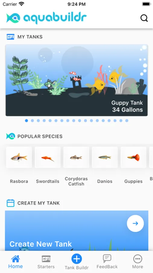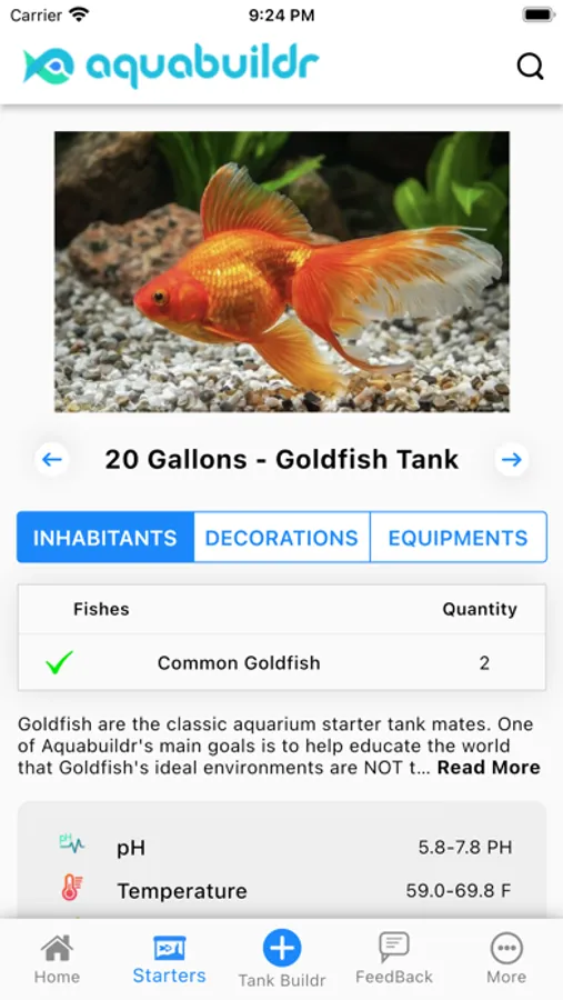 Aquabuildr helps to setup your first tank. It is a result of through research about fishes compatibility, nature, preferred number, preferred temperature and pH value. These factors are the most critical for any aquariums.
