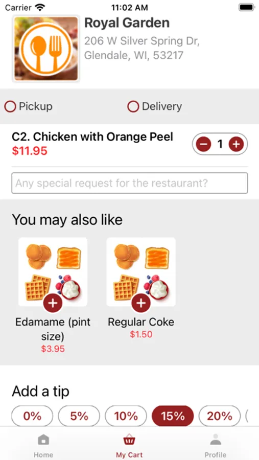 2. Royal Garden is going digital now and has it's own online ordering app. If you want to order delicious food from us, just download our app and place order in 3 quick steps. Build your order just the way you like it or choose one of our combo from the menu. Add items from the rest of our robust menu. And with the order Tracker ® you can follow your order from the moment you place it until it’s out for delivery, carryout or pickup.