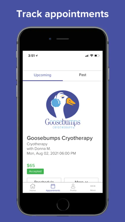 Your next appointment is just a few taps away — download the Goosebumps Cryotherapy app for free today.