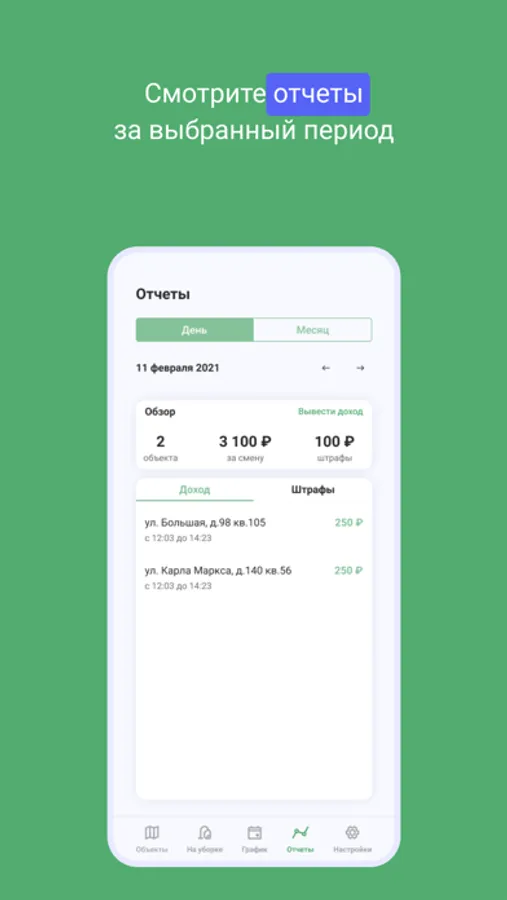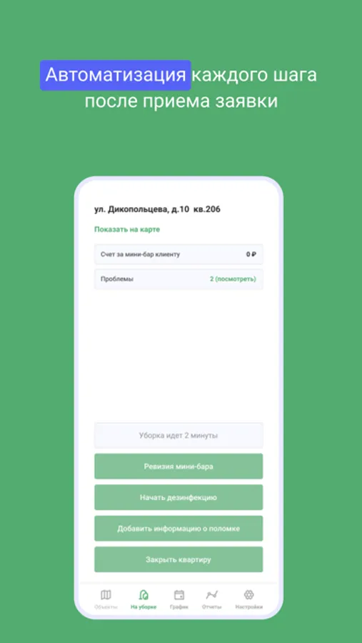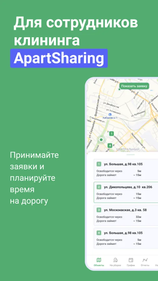 Приложение видит Вас на карте и предлагает максимально близкую квартиру для уборки, доступ в которую осуществляется бесконтактным способом прямо через приложение! Вы работаете сами на себя и зарабатываете намного больше средней ЗП любой горничной.