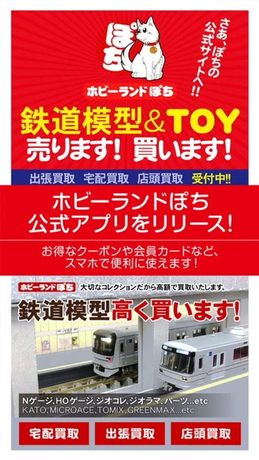 鉄道模型・TOYの販売、買取「ホビーランドぽち」の公式アプリです!