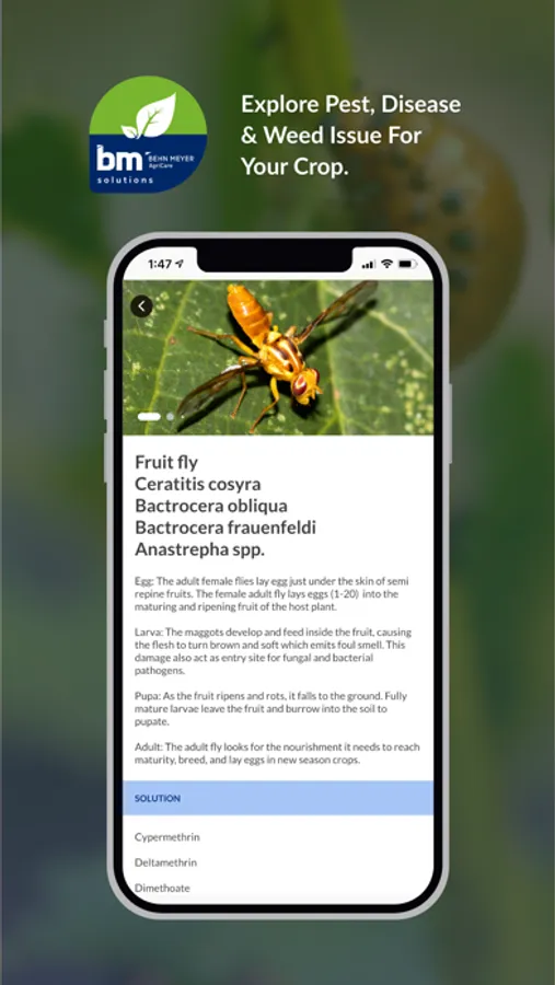 bm AgriCare is an agriculture solution app that helps you instantly identify the possible nutrient deficiencies and treat plant pests and diseases in your field, farm, and garden.