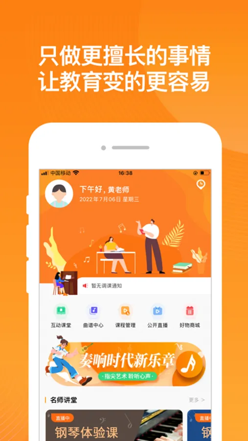 简艺云教师端是帮助艺术培训老师方便管理学生、课时统计、展示比赛活动、曲谱共享等方便老师的App。