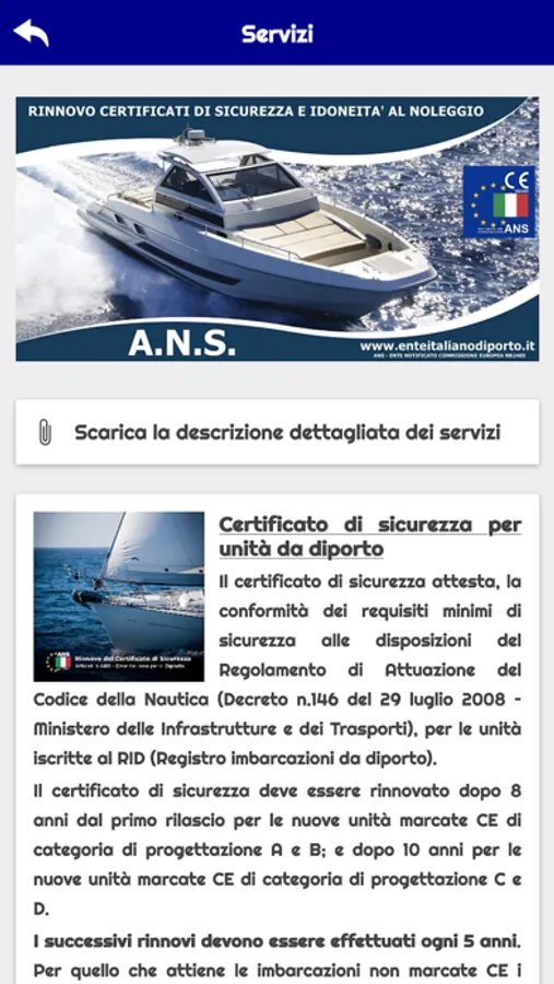Tramite l'App ANS potrai richiedere servizi e/o collaborare direttamente con l'Ente Notificato alla Commissione Europea per la nautica da diporto.