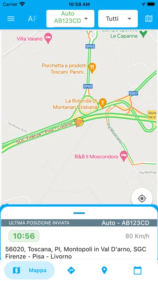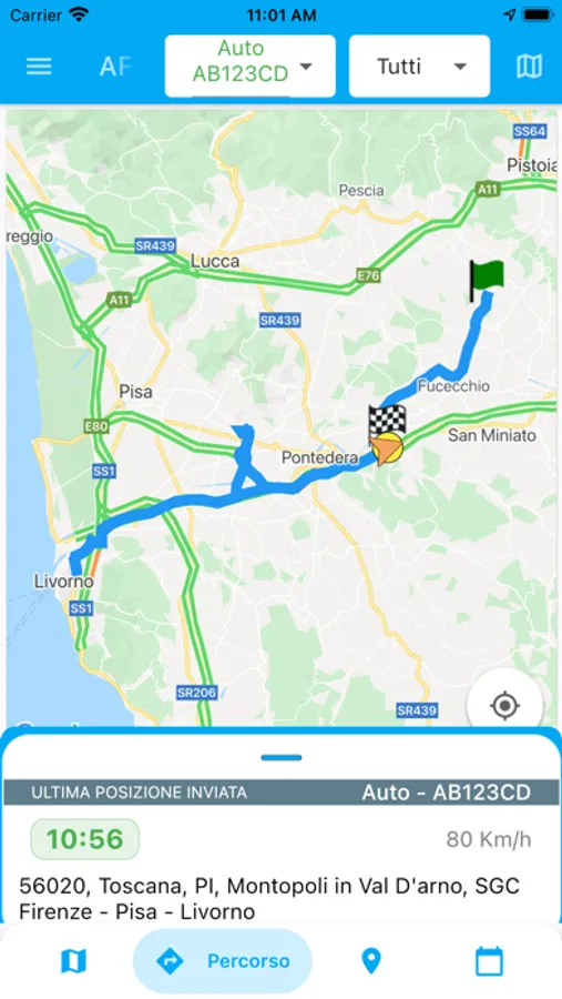 Interfaccia mobile per il servizio di localizzazione satellitare AFI System con il quale puoi tenere sotto controllo ogni mezzo della tua flotta e le merci trasportate