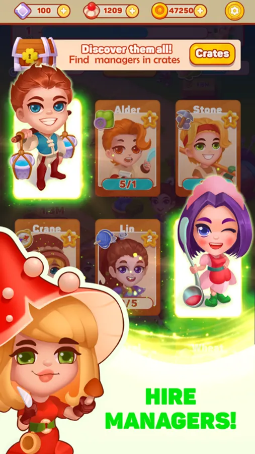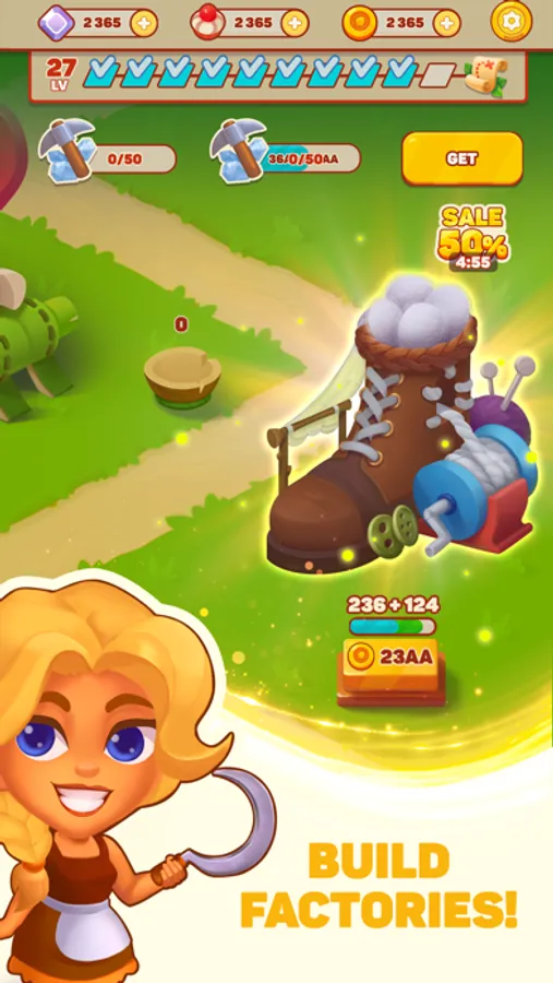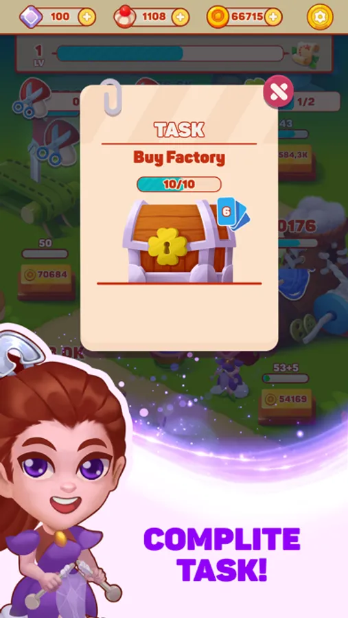 A player will be able to build textile, mushroom, nut, flour and mine factories, earn coins in them, improve them to the maximum and then continue on their way and repeat it in a new location, enlisting the support of new characters and exploring new buildings.