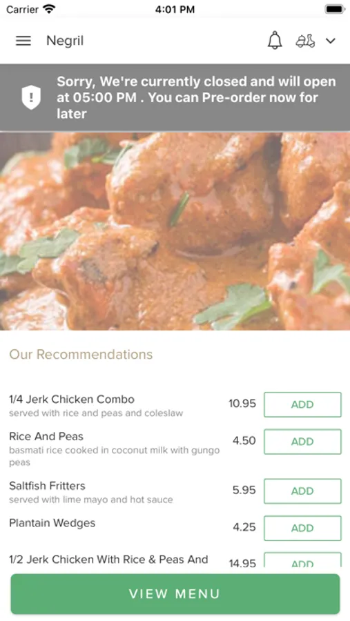 Order Negril Brixton food online! It's so easy to use, fast and convenient. Try our new, online app which contains our entire takeaway menu. The Negril restaurant is located in Brixton, London.