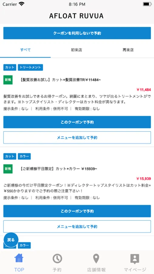 お得なクーポンが配信されます。ネット予約時にクーポン利用での予約も可能なので来店時もスムーズに施術頂けます。