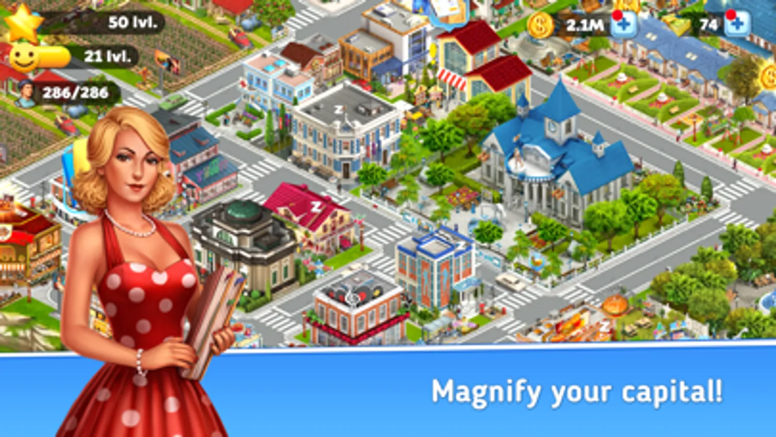 Tired of same-type farms that grow wheat? Tired of feeding cows and chickens? In Golden Valley you can set up a trade and start your own business! You can build various types of buildings, making the virtual Megapolis resemble the real one! And don’t forget about places where you can gather together with your friends! Houses on trees, flower beds and lots of plants will help your Megapolis flourish and thrive. Gather the income and become not only an architect, but also a businessman. A good strategy will help you succeed.