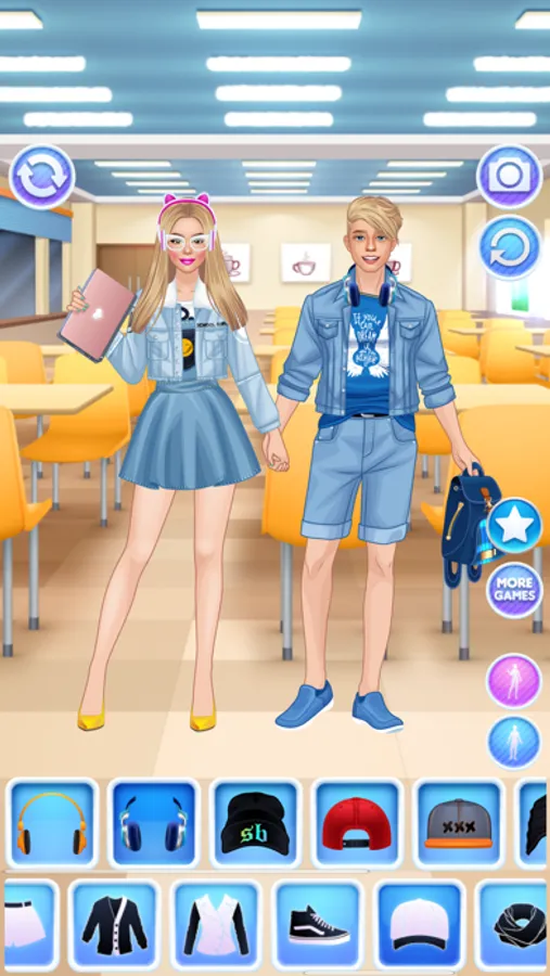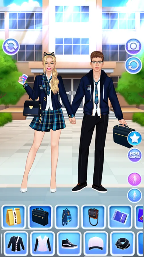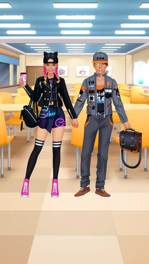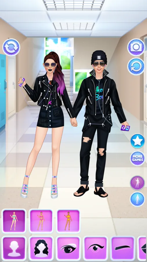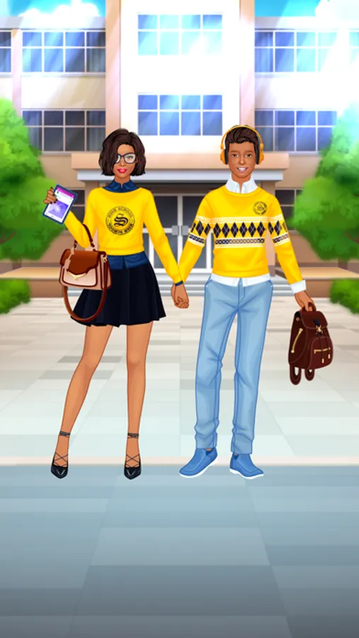 Dress up and make up a teenage girl for a romantic first date, then pick an outfit, a hairstyle and facial features for the boy, too. Or, if you feel more like it, style these cute young lovers for a typical college day: in high school uniforms, jackets, shirts and such. Give the schoolgirl a smart, geeky look, like they'd go into math or computers. Or pick a more formal style for an ambitious student type which plans a career in business. Or put together a cool glam look of a popular girl in the class, with trendy clothes, fancy hairstyles and unusual accessories worthy of a prom queen. Dressing up the boyfriend is as fun as the girlfriend with a stylish selection of garments. Design great outfits for the cute model and her crush.