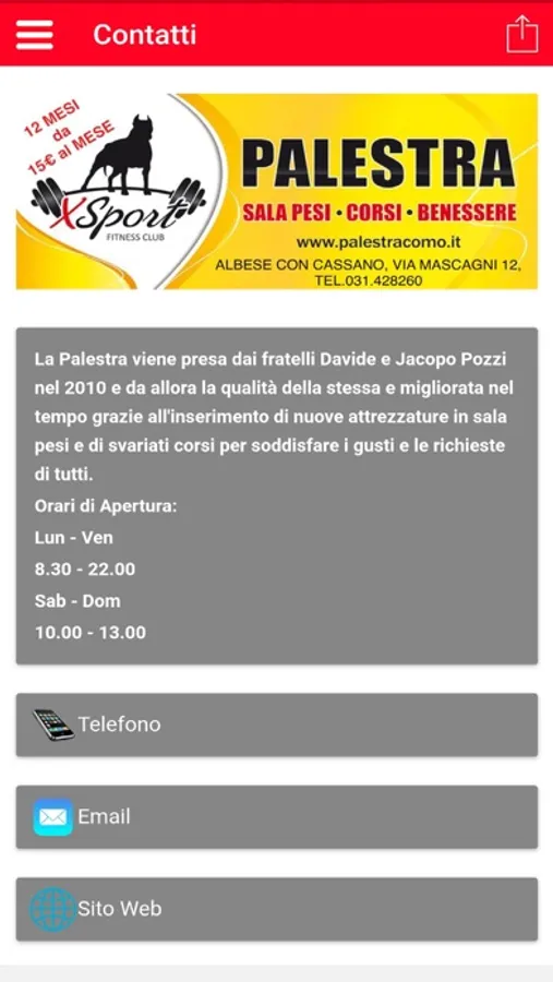 XSport Fitness Club è una palestra situata in provincia di Como che offre numerosi servizi. Nella nostra nuova App personalizzata potrete sempre trovare tutti i nostri servizi dettagliati e gli orari settimanali; potrete vedere i nostri social e le nostre ultime novità e potrete prenotare il vostro posto nei vari corsi che svolgiamo direttamente dall'app con pochi click.