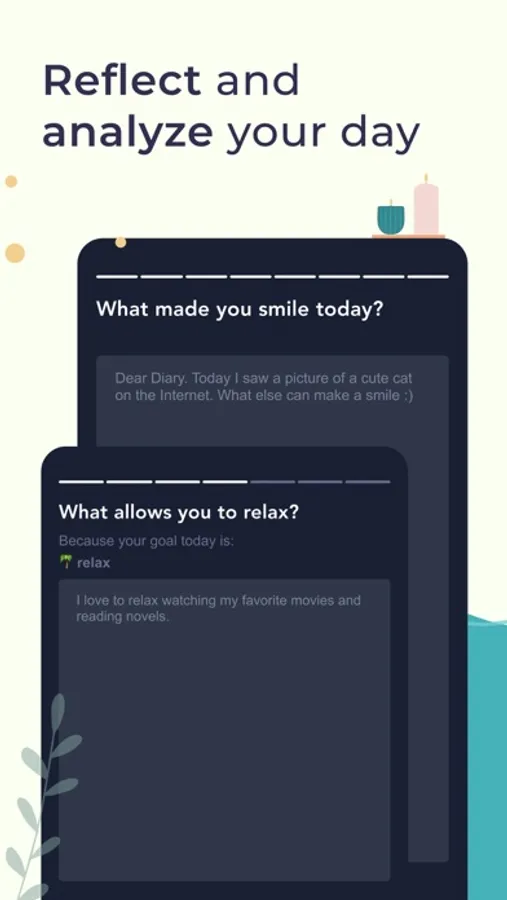 - Reflect by answering specific questions and receive motivational quotes;