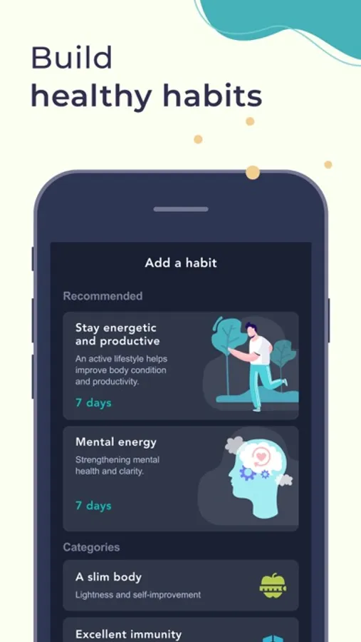 - Habit acquisition with helpful recommendations and ready-made tasks.