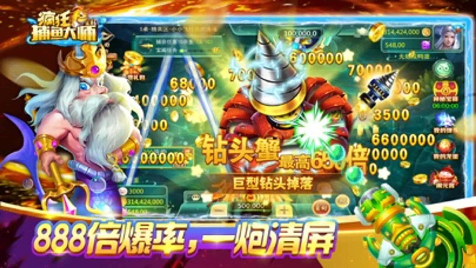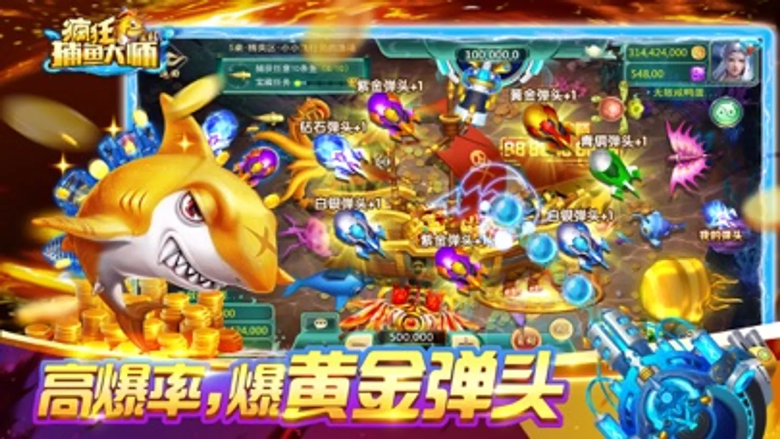 最高500万炮倍,各种道具齐助力,华丽炮弹轮番登场,劲爽特效炫酷炮台,畅快捕鱼爽翻天!
