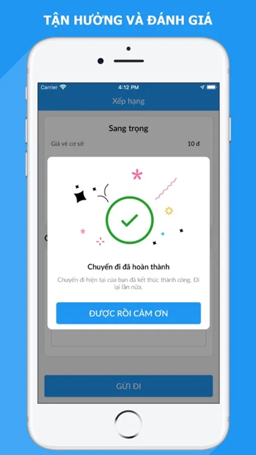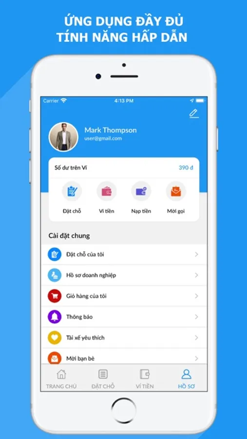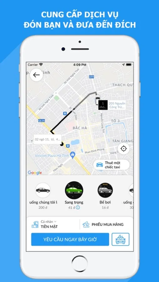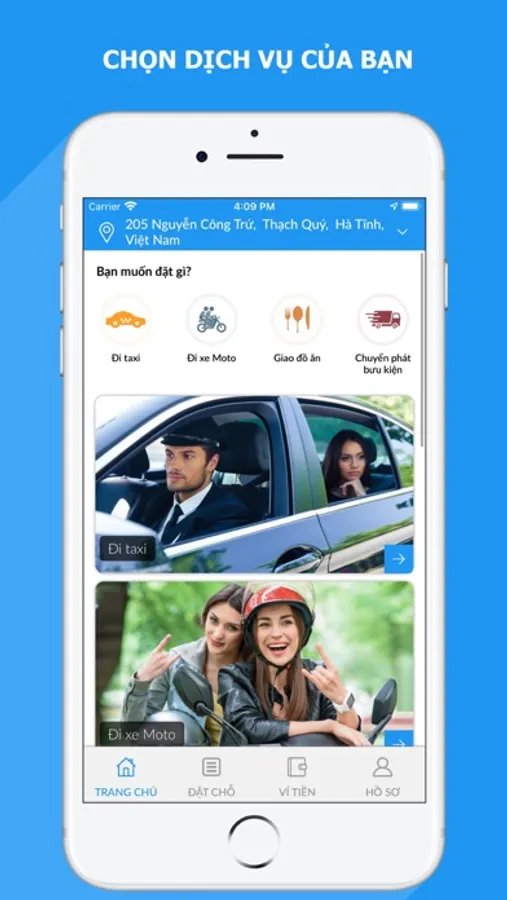 Người dùng ứng dụng gửi yêu cầu về Taxi, Giao hàng, Giao đồ ăn và các dịch vụ khác.