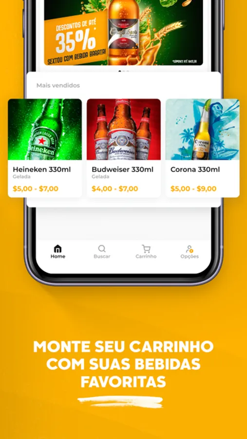 Compre sua bebida preferida sem sair de casa. Você pede pelo app e ela chega até você EXTREMAMENTE GELADA!