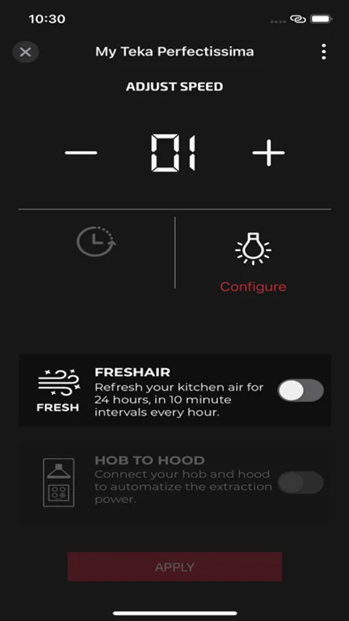 Enable the automatic operation of your hood with Hob To Hood function. Control the current power level of your hob or configure the working time of your cooker hood for as long as you need. With Teka Home app, you will always have full control on everything that happens in your kitchen.