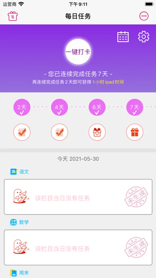 1.小朋友可根据老师布置的作业先设置是否布置;
