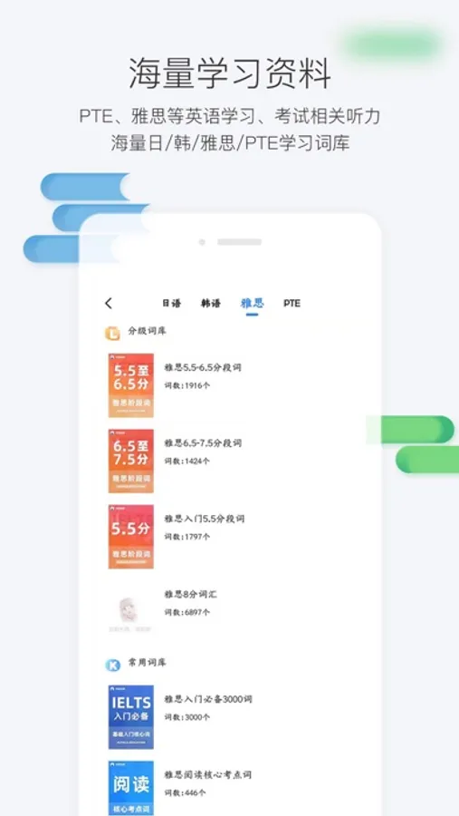 3、提供海量日韩雅思PTE相关的词库