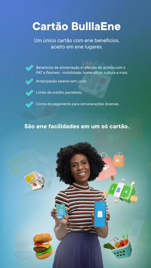 O Cartão BulllaEne tem soluções feitas para empresas e diversos benefícios para os colaboradores. São ene possibilidades de chegar ao fim do mês.
