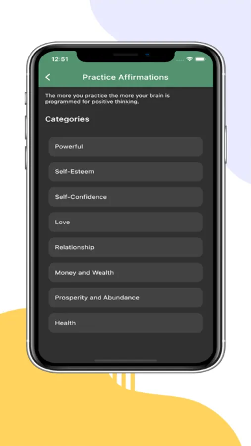 Affirmations are simple but powerful statements that help reinforce the connection between your unconscious mind and your conscious mind. Along with mantras, you get over hundreds affirmations in 10 different categories, each with a unique affirmation for each day.