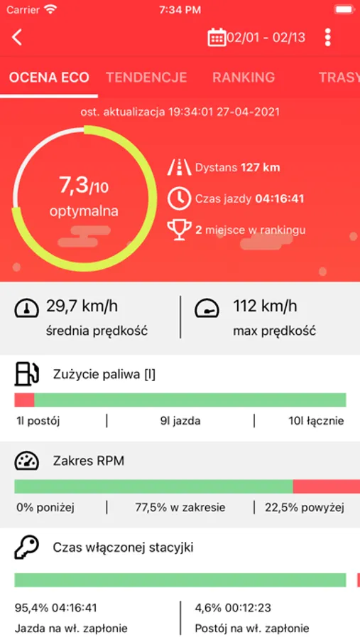 Aplikacja Terminal iCar to aplikacja pozwalająca oceniać styl jazdy kierowców w Twojej firmie. Dzięki temu w prosty sposób można zarządzać kosztami związanymi z zużyciem paliwa oraz eksploatacją części. Dodatkowo zwiększa to poziom bezpieczeństwa dla Ciebie i Twoich pracowników. Analiza oceny stylu jazdy oparta jest na podstawie złożonego algorytmu uwzględniającego m.in. parametry: gwałtownych przeciążeń ( przyspieszenia, hamowania, ostre skręty), jazdy poza zakresem obrotów i wiele innych.