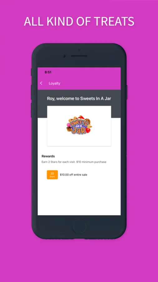 Save time and earn Rewards when you pay with the Sweets In A Jar app at our stores.