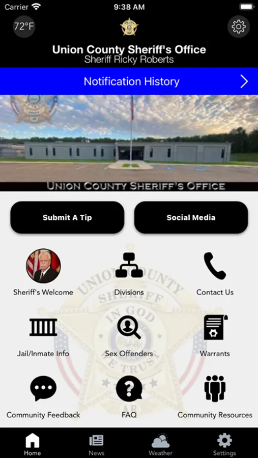 The Union County Sheriff’s Office mobile application is an interactive app developed to help improve communication with area residents. The Union County Sheriff App allows residents to connect with the Union County Sheriff’s Office by reporting crimes, submitting tips, and other interactive features, as well as providing the community the latest public safety news and information.