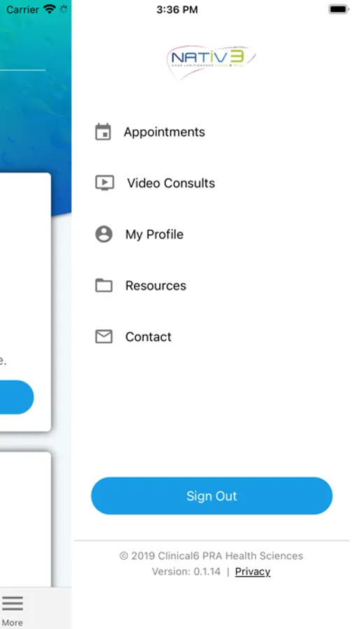 A Clinical Study App for NATiV3. The app is for participants in the NATiV3 study only. If you have not been invited to participate in this study, please do not download the app. This application is a Mobile Health Platform (MHP) solution to allow participants to complete eDiary and ePRO entries, receive alerts, view scheduled appointments, and attend video consultations.