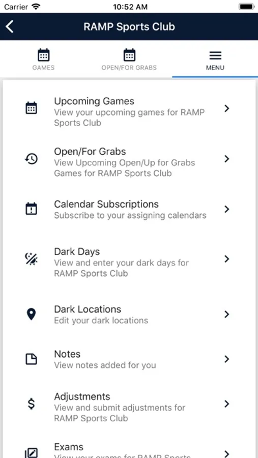 Officials can use the RAMP Assigning App to request, accept, reject and blackout future assignments, manage and sync calendars, get directions and communicate.