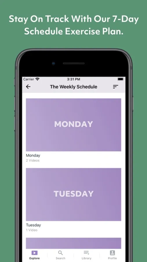 All of our workouts are categorized based on intensity level, time, equipment needed, and focus to help you pick the right workout for you each day. AFFM also offers a weekly 7-day schedule to help you stay on track with your exercise plan, and help take the guessing out of which workout to do that day.