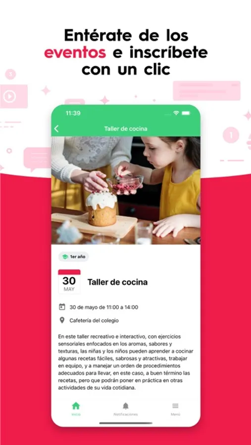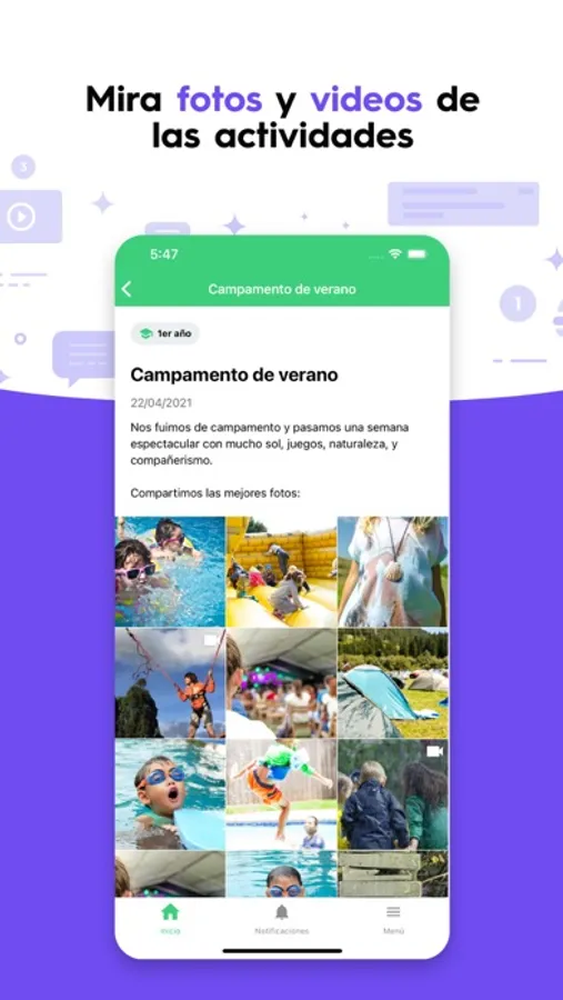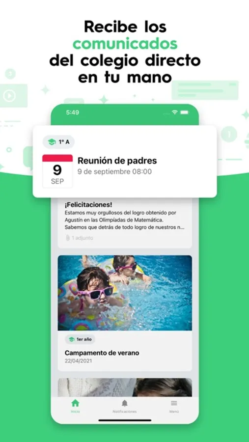 Mantente al tanto de toda la actividad del colegio de tus hijos al instante.