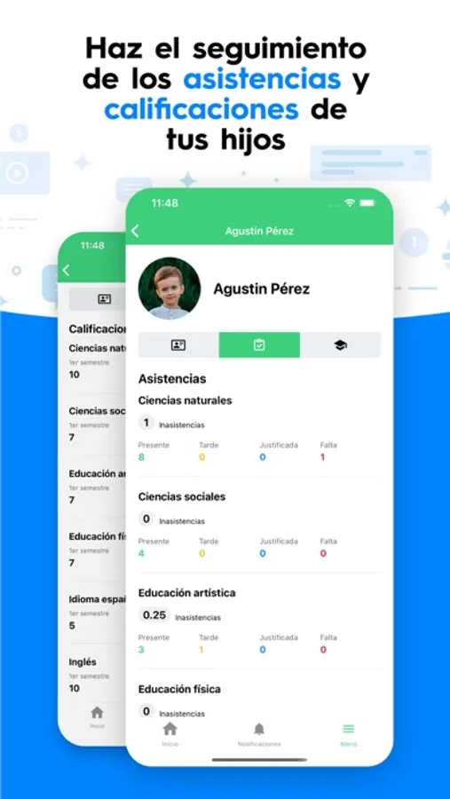 Realiza el seguimiento de las asistencias y calificaciones de tus hijos y evita llevarte sorpresas al recibir el boletín. Visualiza cada materia para ver cómo viene en cada una.