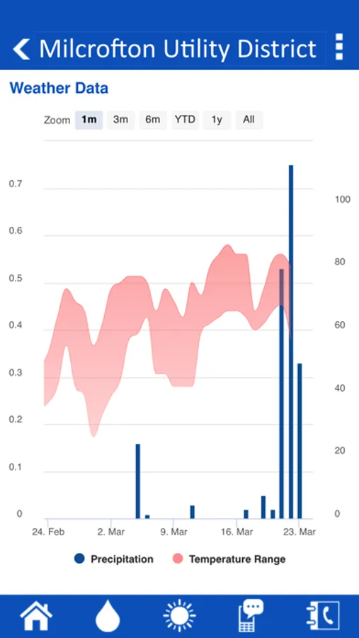 Provides access to utility smart meter information and notifications for Customers of Milcrofton Utility District in Franklin, TN. View usage trends, hourly, daily and monthly meter data, local weather history, leak alerts, usage notifications and other pertinent account information.