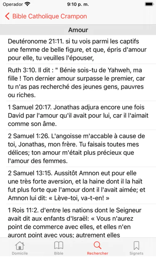 Catholic translation of Canon Augustin Crampon, version 1923, of the Old and New Testaments.