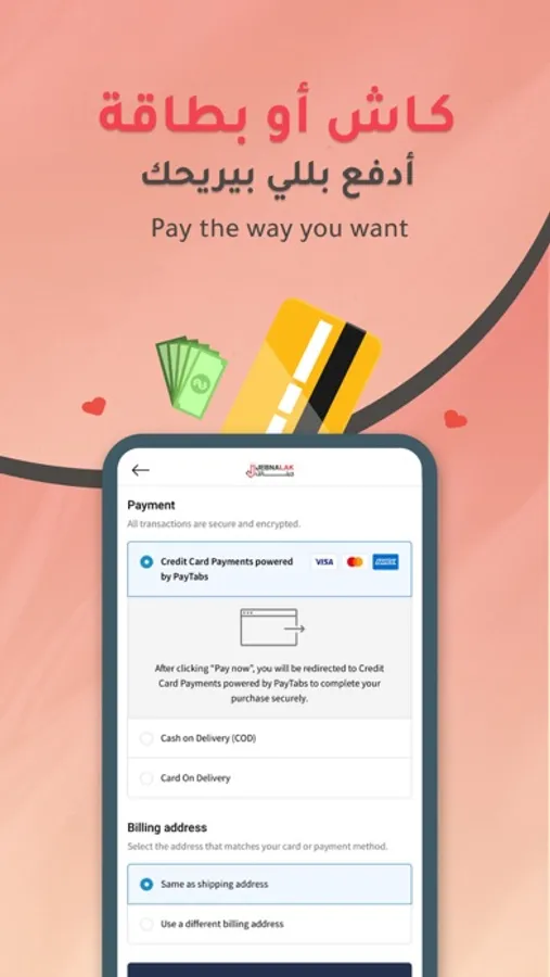 جبنالك بيفهم عليك وبوفّرلك خيارات كثيرة للتسوق عن طريق التطبيق أوالموقع الإلكتروني وكأنك بالمتجر، إحنا بنجهّزلك طلبك لتستلمه من محلنا أو بوصلك لباب البيت، وبالوقت يلي بتحس بدك تتسوق بنفسك ممكن تزورنا بالمحل وتختار الغرض بإيدك.