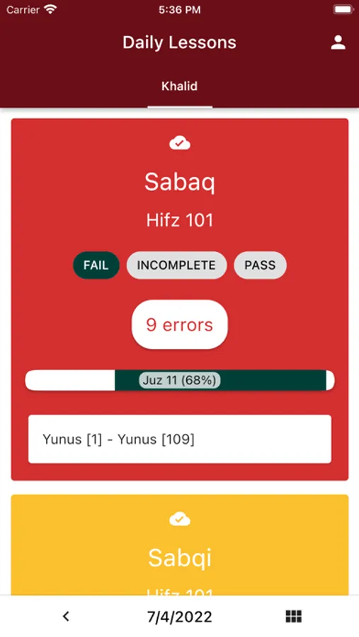 Sabaq is a simple, easy, and intuitive school-based app designed for parents and teachers of CJIIS for quickly tracking and sharing a student's Qur'an progress.